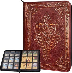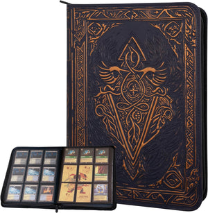 A hand-painted binder fantastically designed to hold cards for most TCGs. This binder features360 side loading pockets measuring 6.8cmx9.7cm with a soft interior to keep cards from scratching. Keep your cards secure in this reinforced binder with zipper closure.
