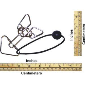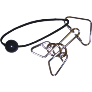 Don’t let the cute name and design fool you. This can be a really tough challenge. Made with 3mm wire and nickel-plated, this puzzle can withstand almost anything, even frustration. Can you find a way to remove the string and then put it back as it were? The two rings can’t move much around, but the top of the arrow slides freely up and down. Take advantage of these characteristics to successfully solve it!