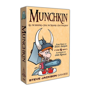 Go down in the dungeon. Kill everything you meet. Backstab your friends and steal their stuff. Grab the treasure and run. Admit it. You love it. This award-winning card game captures the essence of the dungeon experience . . . with none of that stupid roleplaying stuff. And it's illustrated by John Kovalic! Fast-playing and silly, Munchkin can reduce any roleplaying group to hysteria. And, while they're laughing, you can steal their stuff.