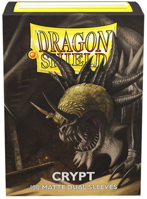 Dragon Shield Matte Dual sleeves. Clear front and a textured matte back. Fully opaque sleeves with a black interior, an elegant backdrop for black bordered cards.